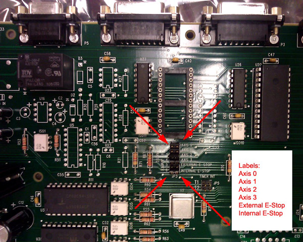After repairing the problem, be sure to restore the original state of the jumpers. You may be tempted to run the machine with all of the jumpers in place instead of fixing the cause of the problem. Note that this is a dangerous practice, as the machine cannot sense lost feedback and could result in an extremely high speed runaway axis.